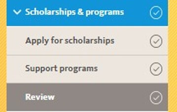 - Bolsas de estudo: Nessa subseção, os alunos devem selecionar todas e quaisquer categorias de bolsas de estudo que se apliquem a eles.
