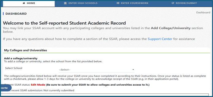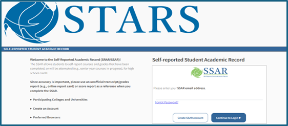 Self-Reported Transcript Academic Record System (STARS/SSAR)