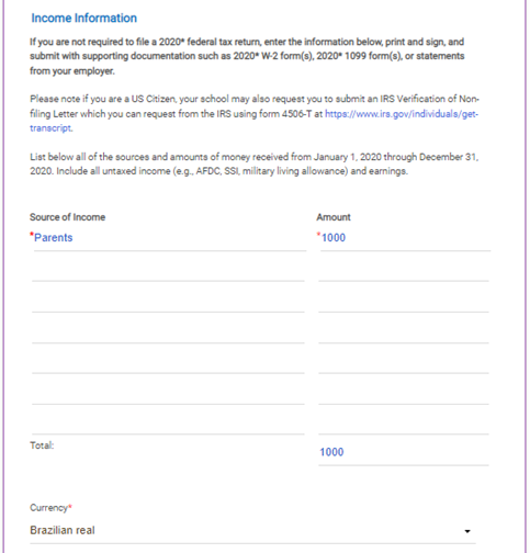 - Para quem tem PJ: Exigem o Business/Farm Supplement. O upload deve ser feito no Financial Aid Portal.